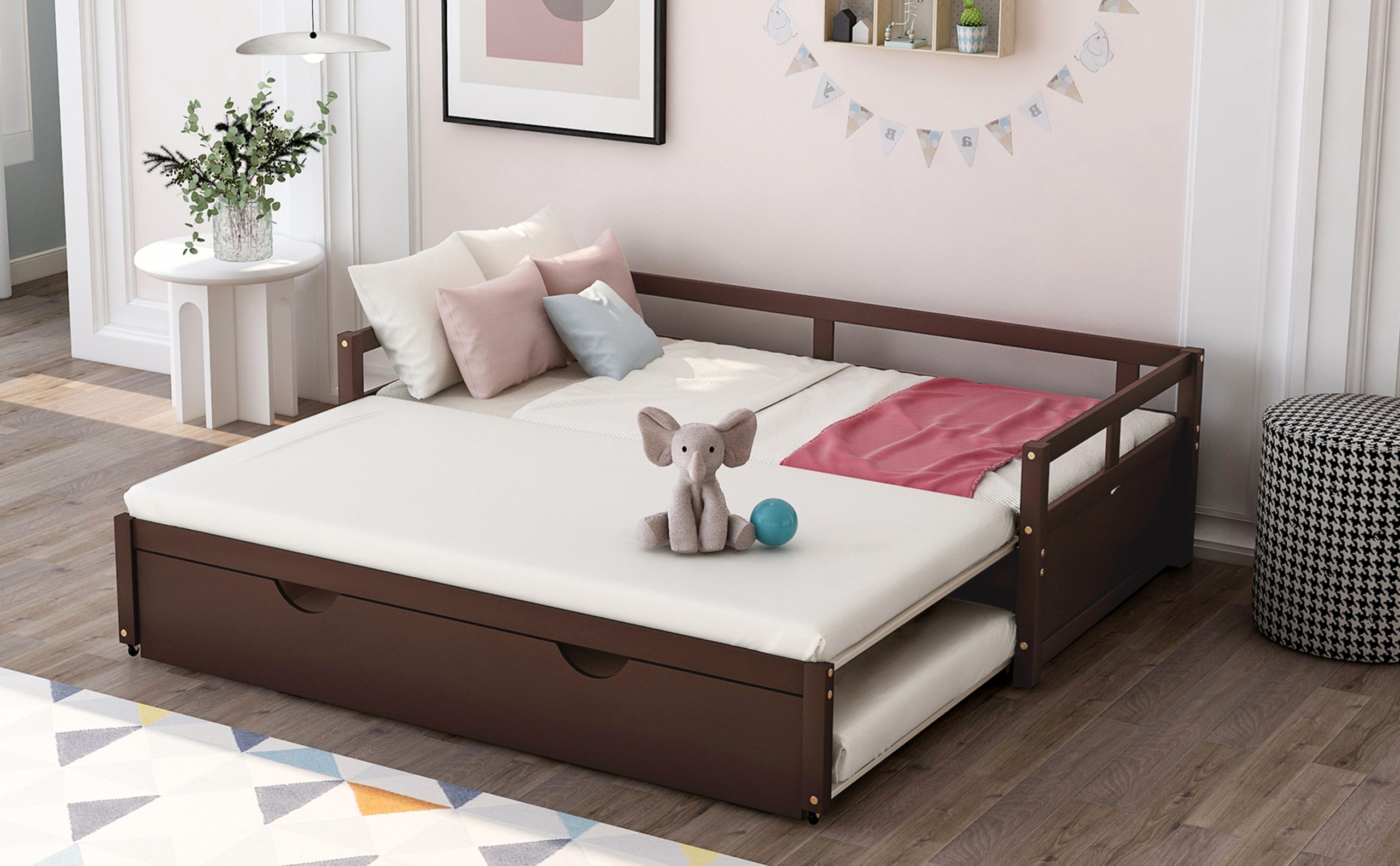Wooden Twin Size Daybed with Trundle Bed