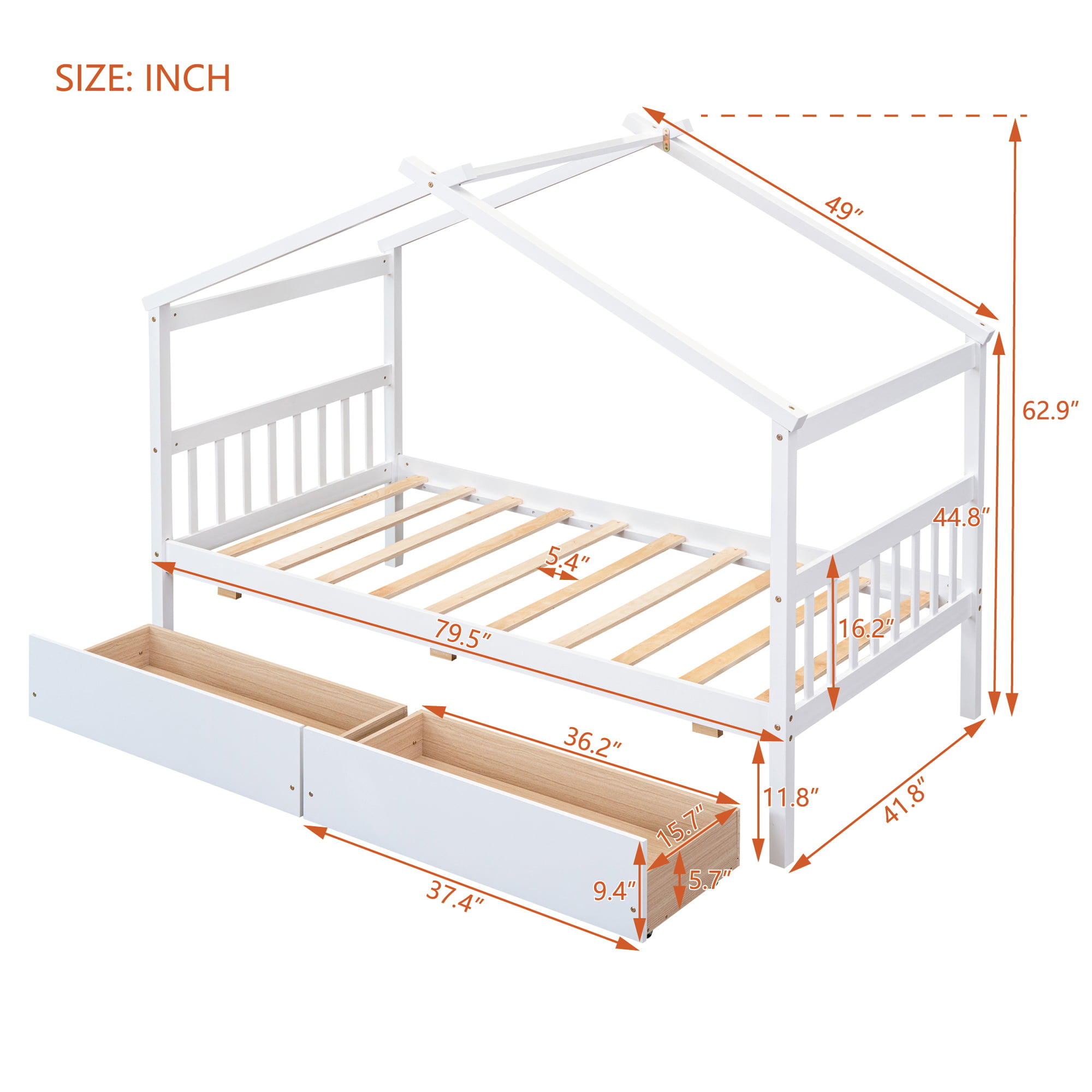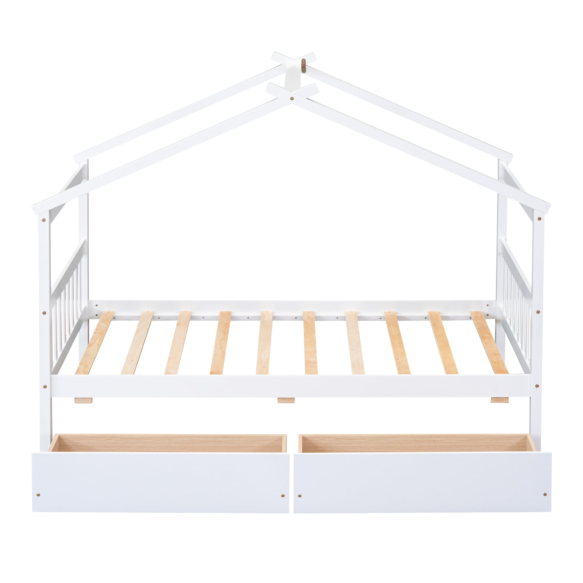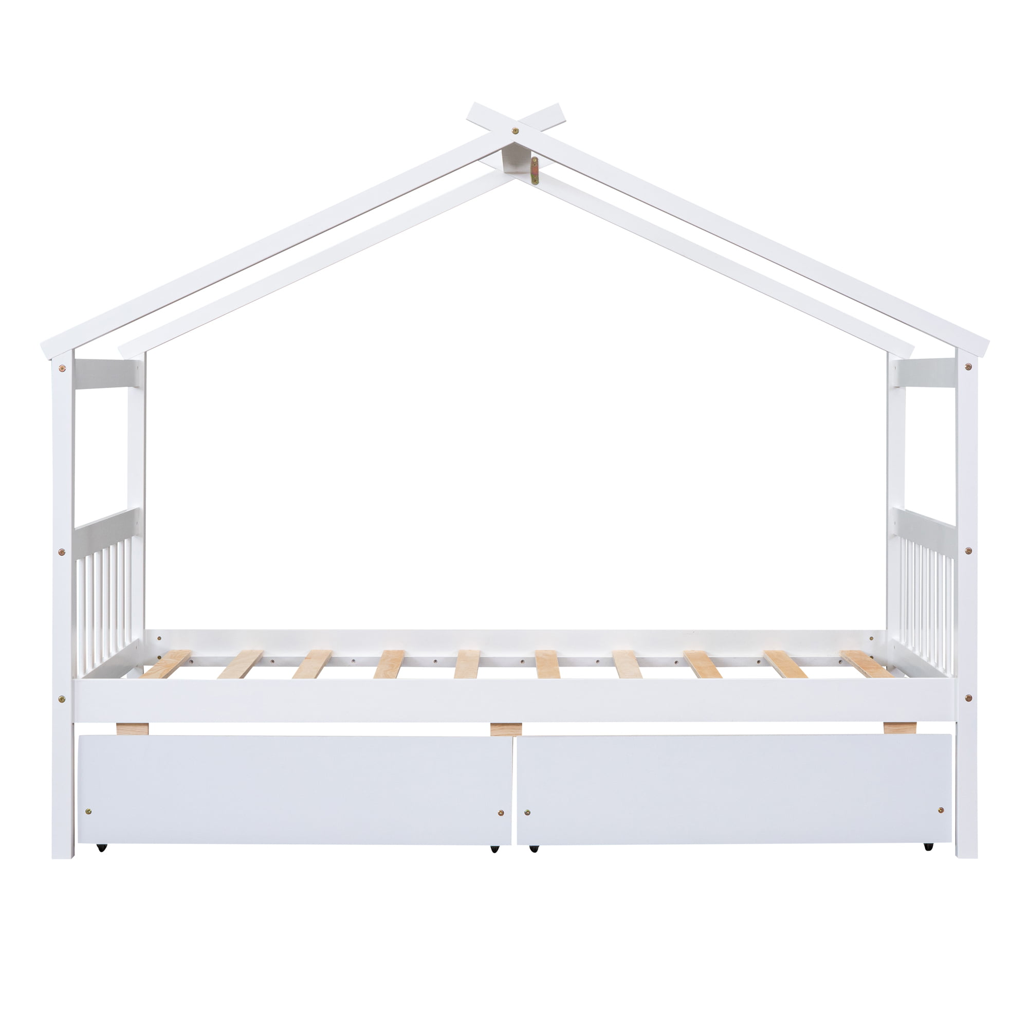 Wooden Twin Size House Bed With Drawers