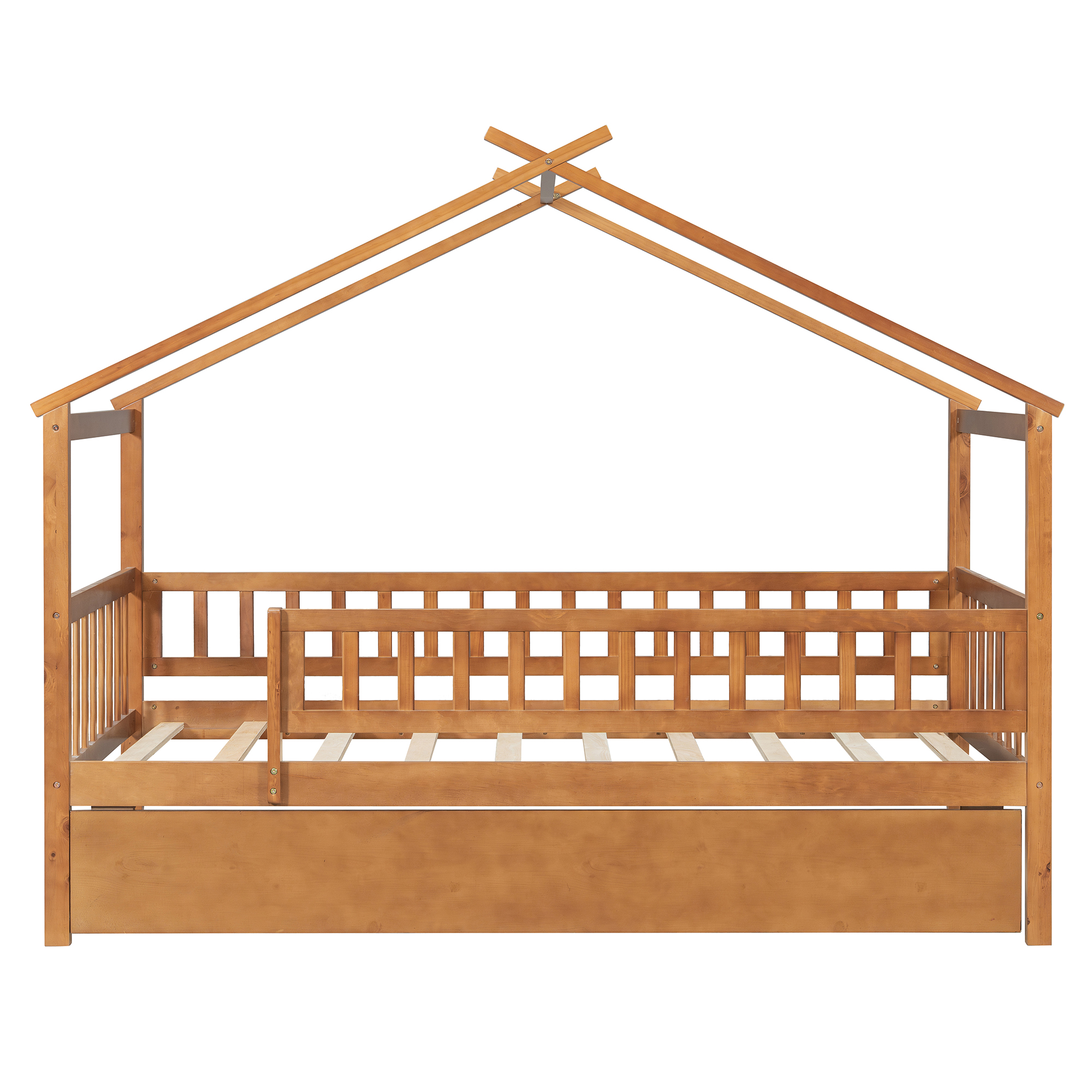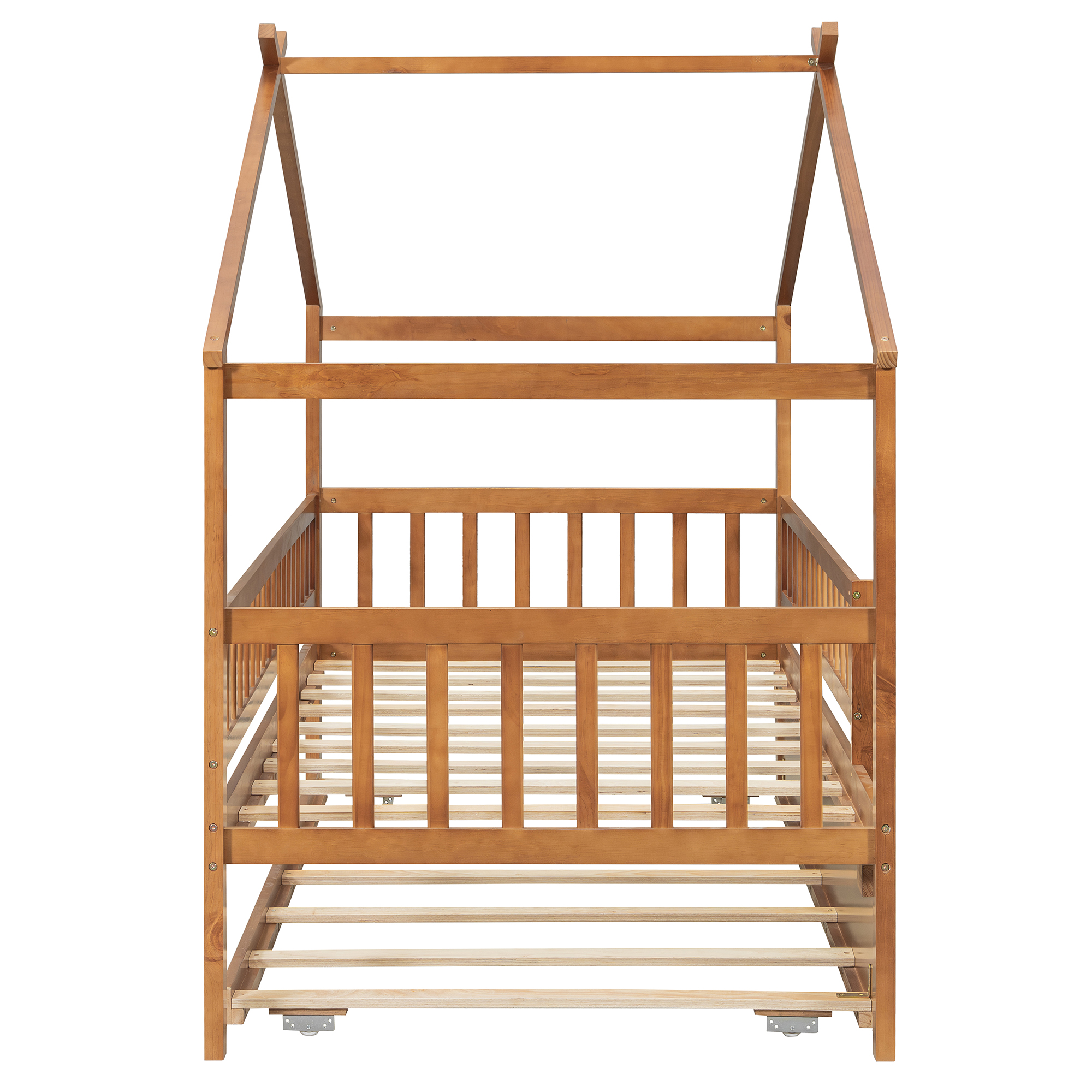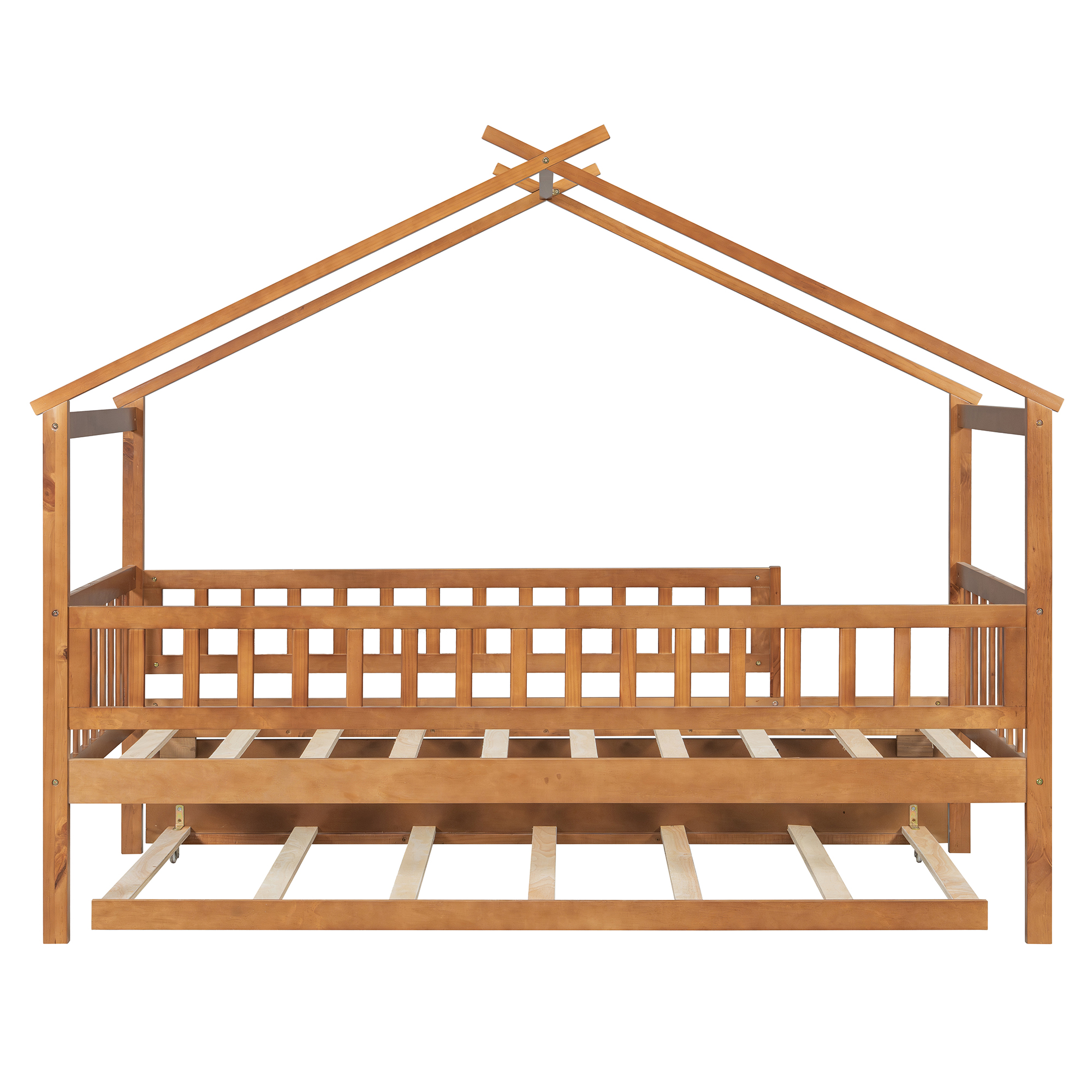 - [Spacious Storage] The wood house platform bed with trundle offer extra sleeping space for sleep-over. Simply just roll out when needed and roll in when it’s not in use. It’s a perfect space-saving solution to you.