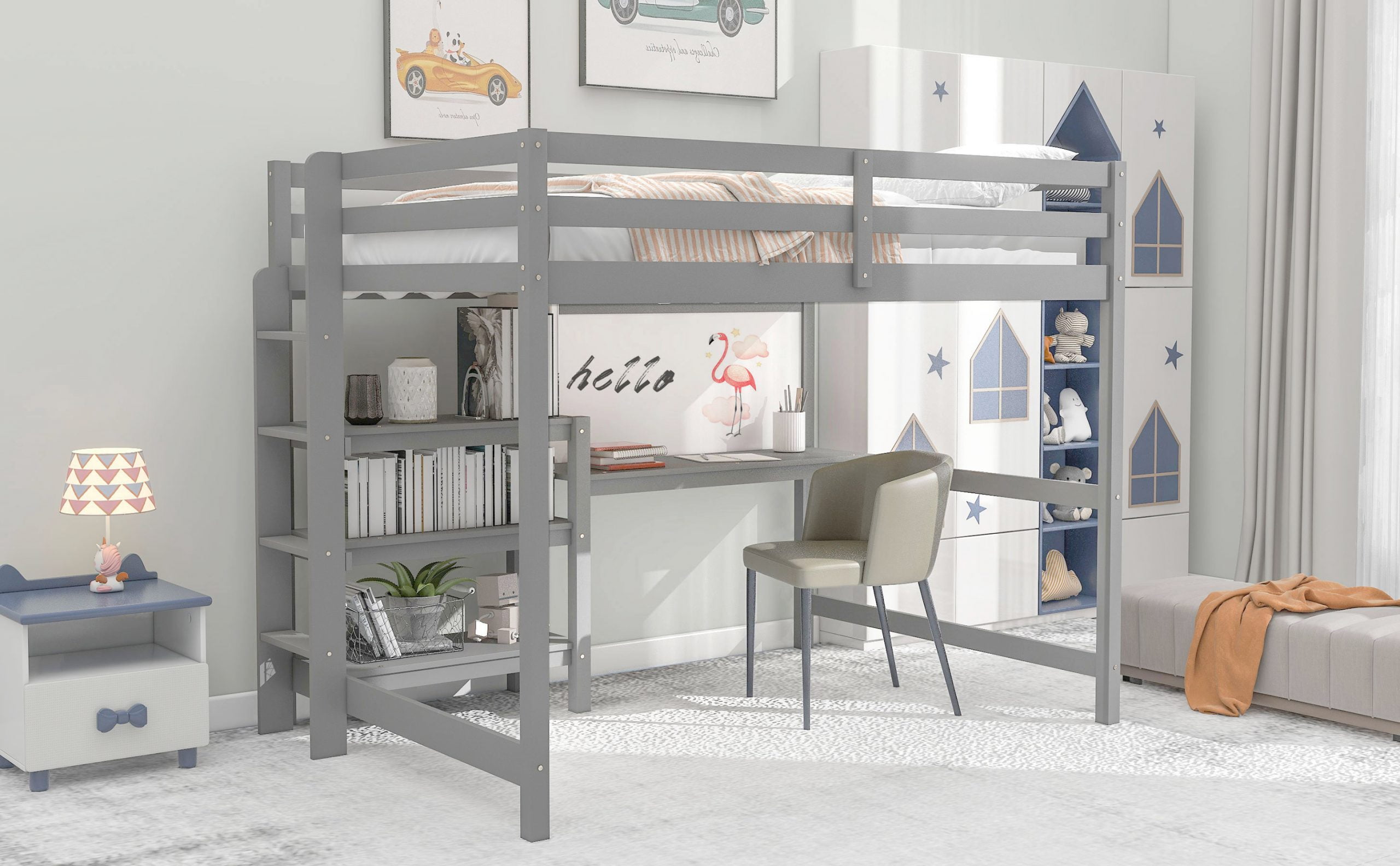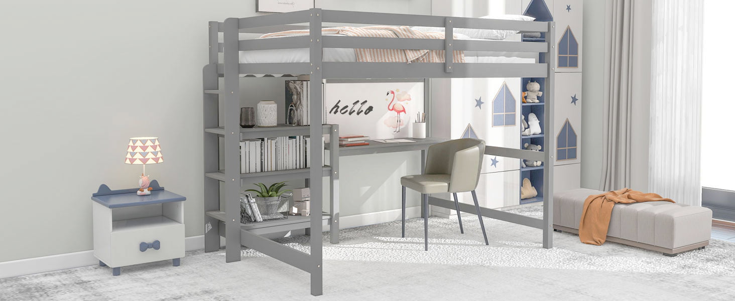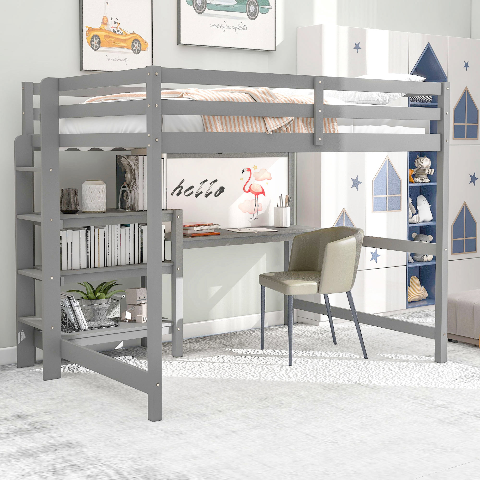 - [Versatility galore] The space underneath the full size loft bed is a good place for you to read, do homework or play and create their own world to be explored. The bed comes with 3-tier shelves, desk and writing board to put what you need. The writing board can write and draw with a water-based pen, and it is easy to erase.