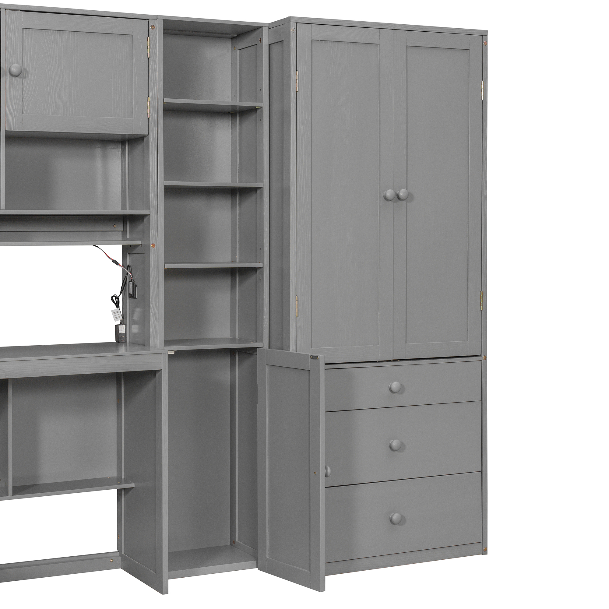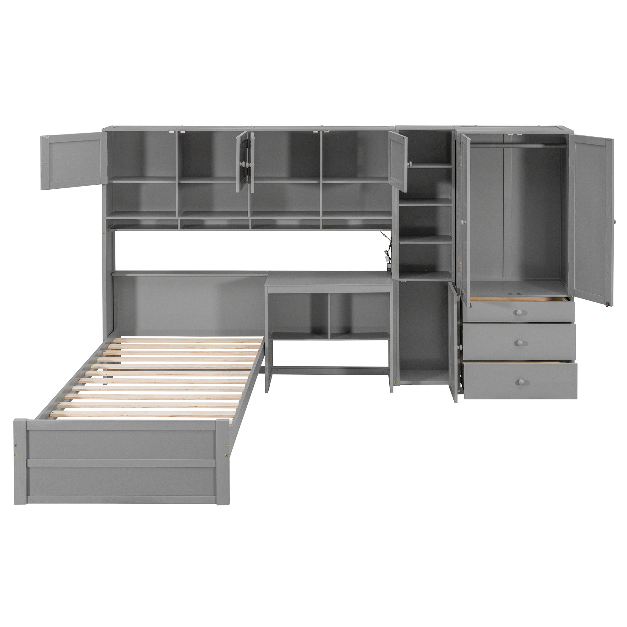 - [Ample Storage Space] Equipped with three drawers and multiple cabinets and shelves, this bed offers plenty of storage for clothes, books, accessories, and other personal items, helping you keep your bedroom neat and tidy.
